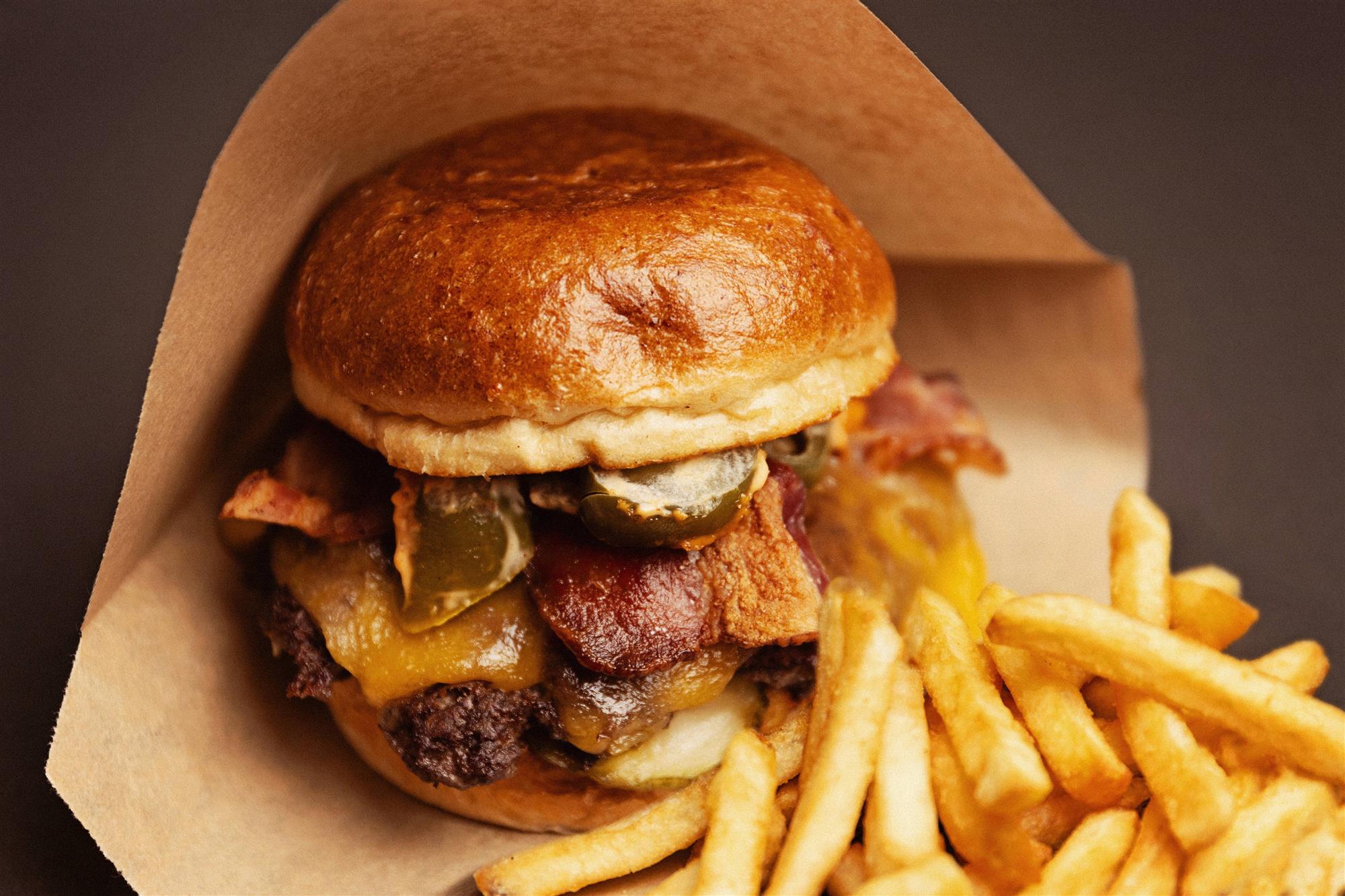 Chili mayo, pickled cucumber, jalapeños, cheese, smoked bacon